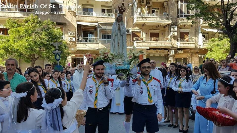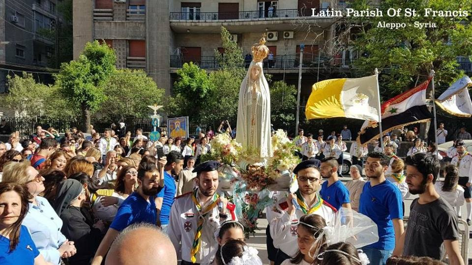 Május 13-án végre reményt sugárzó esemény történt a háború tépázta szíriai Aleppóban: a várost a Fatimai Szűzanyának szentelték az Assisi Szent Ferenc római katolikus székesegyházban. A Fatimai Boldogságos Szent Szűz szobrát a portugáliai kegyhely küldte ajándékba Aleppónak.