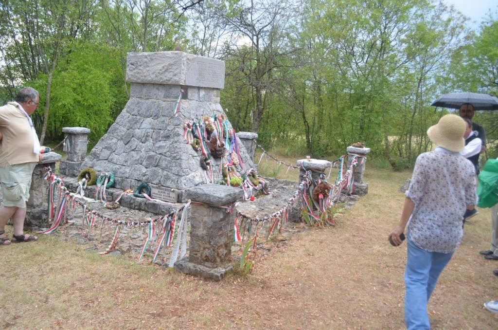 A nagyváradi 4-es honvéd gyalogezred emlékgúláját esőben keresték fel a Márton Áron nyomában járók. A nagyváradi honvédek a Monte San Michele védelmét látták el, 1916. február közepétől egymást váltották a székesfehérvári honvéd századokkal. Legutoljára a 6. isonzói csatában (1916. augusztus 4–14.), augusztus 6-án vonult fel a háromezer főnyi egység. Négy napon át állták a rohamokat, és augusztus 10-én a Doberdót védők közül utolsóként vonult vissza a maradék kétszáz fő. Az ezred legendás parancsnoka, Szentkereszthegyi Kratochvil Károly ezredes összesen négy emlékgúlát állíttatott a hősök emlékére, még a háború idején, 1917-ben. Ezek egyikénél helyztek el emlékkoszorút a San Martino melletti egykori templomdombon (Cappella Diruta) a zarándokok.