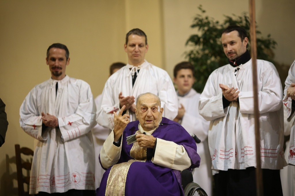 A budai ciszterci Szent Imre-plébánia, ahol a hetvenes évek elejétől volt 35 éven át kisegítő lelkész Placid atya, hálaadó szentmisén ünnepelte 100. születésnapja alkalmából, 2016. december 18-án szeretett papját.